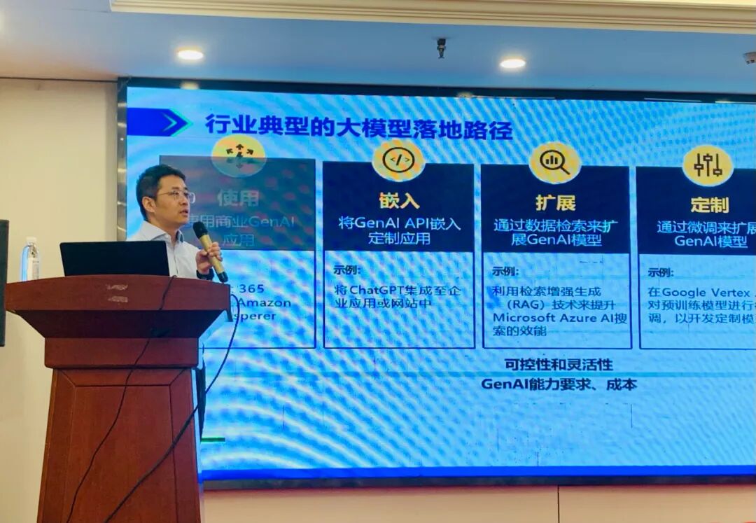 首先,深信服的AI产品解决方案专家和高级系统架构设计师王红伟,带来了一场关于《大模型在企业的落地路径和工程实践》的主题演讲,并结合自身丰富的实践经验,详细阐述了大模型技术如何在企业中实现有效落地。